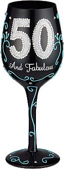 Bottom's Up 15-Ounce 50 and Fabulous Handpainted Wine Glass