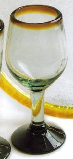 Mexican Glass Tulip Wine Amber Rim Wine Glasses