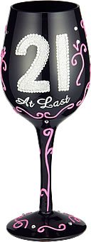 Bottom’s Up “21 At Last” Hand Painted 15-ounce Wine Glass. Celebrate with this festive hand painted wine glass. It is appropriate for either red or white wine. The oversized 15-ounce capacity allows plenty of space for the wine to breathe, allowing i [Read more...]