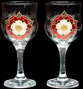Celtic Glass Designs Set of 2 Hand Painted Wine Glasses in a Medieval Tudor Rose Design.