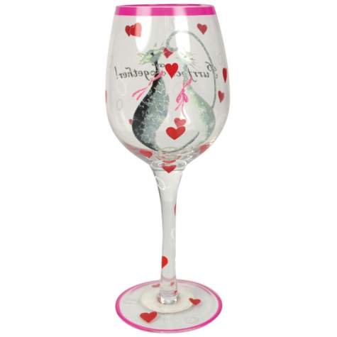 Purrfect Together Inscription Wine Glass with Catitude Cat Pair Design