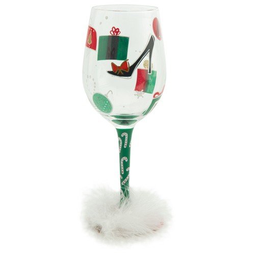 - Lolita licensed hand painted Christmas themed wine glass with trademark unique wine cooler drink recipe on the bottom of the stem