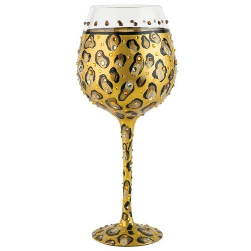- Lolita licensed hand painted leopard super bling wine glass is bedazzled with hundreds of rhinestones