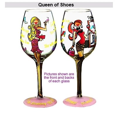 Bottom's Up 15-Ounce Queen of Shoes Handpainted Wine Glass