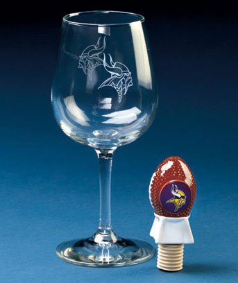 Minnesota Vikings Wine Glass and Stopper Set.