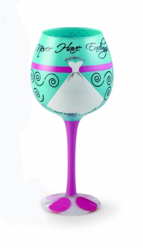 Hand painted 16-ounce wine glass comes in an acetate box for easy gift-giving. With colorful fairy tale wedding dress design reads: Real love stories never have endings.” [Read more...]