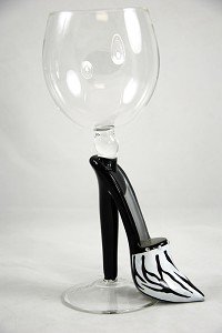 Hand Blown Zebra High Heeled Shoe Wine Glass by Yurana Designs