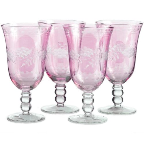 Serve your guests in style with this beautiful set of four vintage style all purpose glasses. Each translucent cut luster glass features a delicate floral design. This glassware is hand crafted and mouth blown. Perfect for every day or special occass [Read more...]