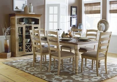 5372S Features: -Solid wood dining room offering.-Warm two-tone butter milk and medium tone burnished oak.-Storage shelving that is fronted by wood-framed glass doors.-Wine bottle and hanging glass rack storage. Collection: -Nash Collection. [Read more...]