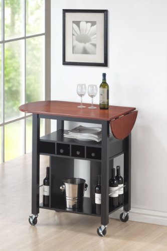 Roundhill Cherry Drop Leaf Wine Serving Cart on Wheels, Black