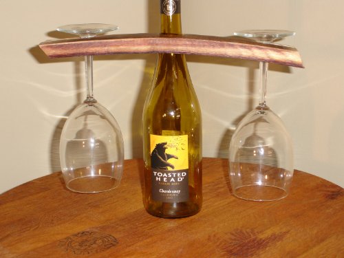 This finely hand-crafted wine bottle and glass holder is made from a oak wine barrel stave from the Paso Robles or Napa wine Country in Central California!
