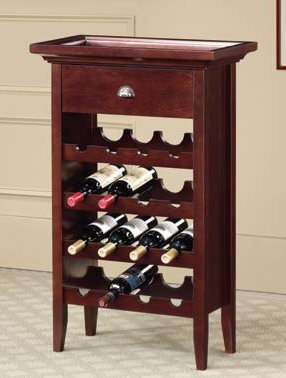 Dimension: 24″W x 12.5″D x 38″H Finish: Cherry Material: Wood Wine Rack with Lift Off Top in Cherry Finish Entertain in style with this practical and stylish wine rack. Able to store up to 16 bottles of wine, the top also lifts off to become a servi [Read more...]